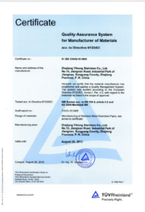 公司嚴格按ISO9001:2015《質量管理體系—要求》、ISO14001:2015《環(huán)境管理體系 要求及使用指南》、ISO 45001:2018《職業(yè)健康管理體系 要求及使用指南》和TSG 07—2019《特種設備生產和充裝單位許可規(guī)則》,建立完善的管理體系。公司擁有國內較大的12000KN冷拔機組和先進的全溫控不銹鋼固溶退火爐等生產設備,同時具有ET16-159渦流探傷儀、UT16-159超聲波探傷儀、UT159-830超聲波探傷儀、H159-630水壓試驗機、WAD—600液壓材料試驗機、4XB電腦金相顯微鏡、JQ—300沖擊試驗機、HBRVU—187.5硬度計、島津光譜儀、化學分析儀、晶間腐蝕試驗等完善的檢測設備。